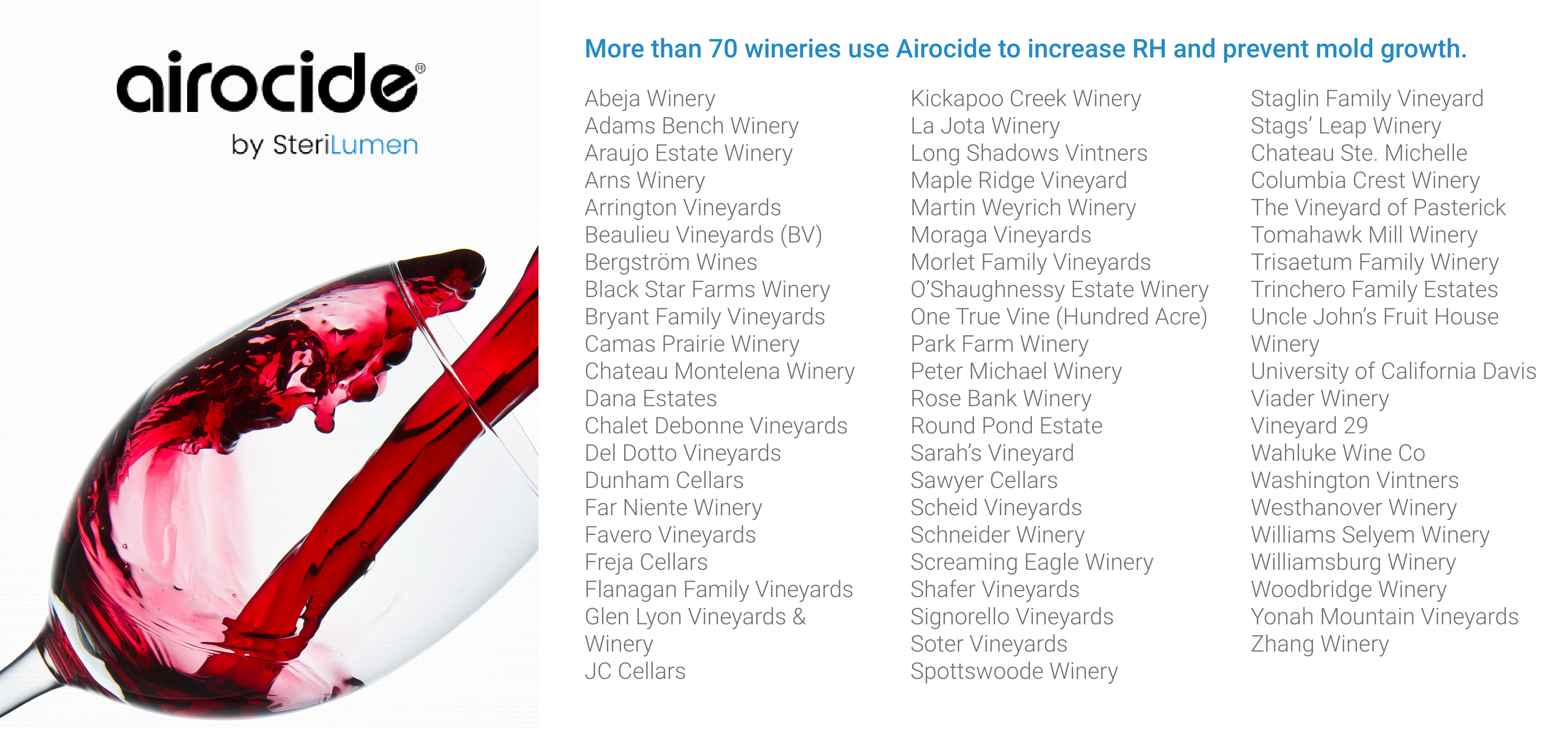 Airocide air purification is trusted by Chateau Montelena Winery, Viader Vineyards & Winery and Moreto.